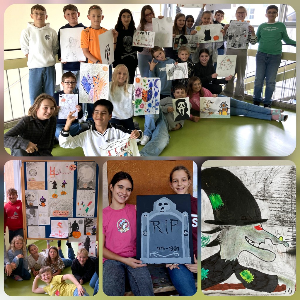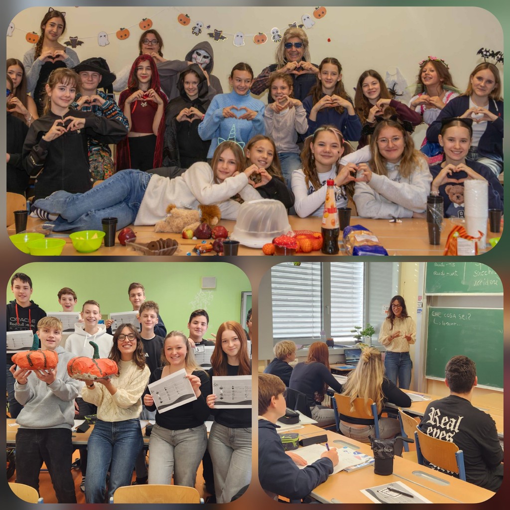 Viele schaurig-schöne Halloween Songs wurden in Musik gesungen und auch in Deutsch unheimliche (Geister)geschichten und Personenbeschreibungen nicht nur mit Begeisterung gelesen, sondern auch selbst geschrieben und gruselige Gespensterrezepte ausprobiert. Erstmals wurde in Religion der Unterschied zu Allerheiligen herausgearbeitet und in Italienisch mit unserer Sprachassistentin Vanessa aus Venedig ein sprachlicher Ausflug in die Welt von „dolcetto o scherzetto“ unternommen.