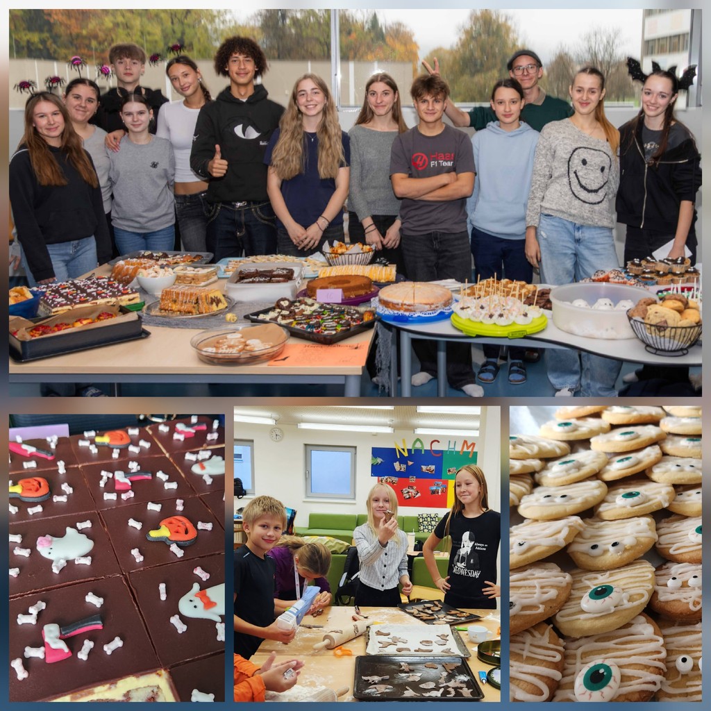 „Süßes und Saures“ durfte natürlich nicht fehlen. So wurden in der Nachmittagsbetreuung höllisch gute Halloween Kekse gebacken und unsere 7. Klassen organisierten einen „Spookylicious Halloween Bake Sale“ für die ganze Schule. Die perfekte Kulisse dazu boten die unheimlichen Zeichnungen, gruseligen Spinnen, Fledermäuse und Grabsteine, die in Kunst und Gestalten sowie bei zwei Workshops im Kulturquartier Leoben entstanden.