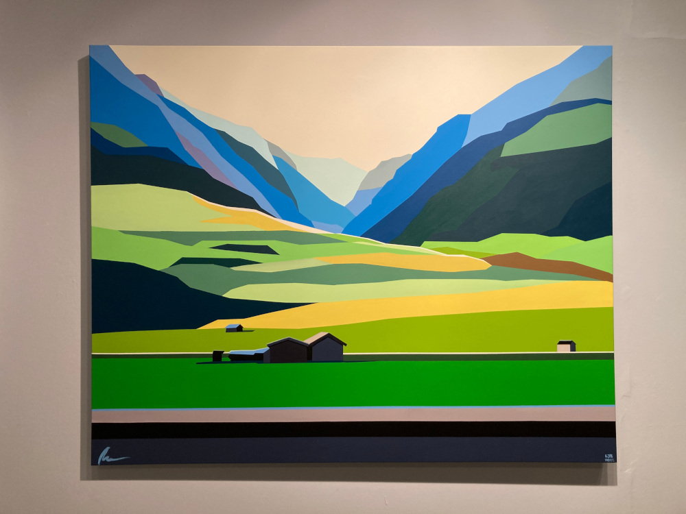 Der Künstler bildet darin seine Eindrücke unserer Landschaften, Städte und Wahrzeichen ab und übersetzt sie in geometrisch-abstrakte Kompositionen mit außergewöhnlicher Farbgestaltung.